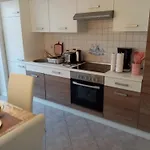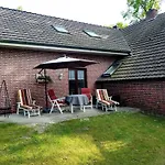 Eine voll ausgestattete Küche mit einem Wasserkocher, einem Kühlschrank und einem Herd gehört zur Ausstattung der Unterkunft für Selbstversorger. Das Apartment ist in nur 350 Meter Entfernung von der Bushaltestelle Hauptstrasse/Herrenmoorweg. Die Gäste sind eingeladen, auf einer Terrasse zu entspannen.
